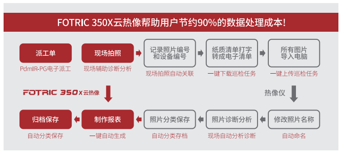 與熱像儀相比,FOTRIC350X云熱像的工作效率提高了10倍。