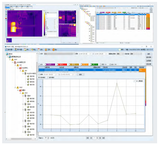 FOTRIC PdmIR-PG熱像數據管理系統以樹狀結構的方式,電子化管理設備臺賬,為用戶提供檢測任務數據統計、工作報表展示,數據查詢、圖像分析、歷史趨勢分析等豐富的數據管理功能。