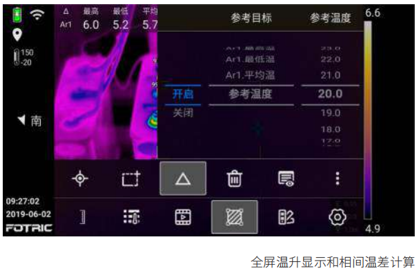 本機可以設置環境溫度為基準溫度,屏蔽環境溫度干擾,自動計算設備的溫升,同時可以自動計算電氣設備的相間溫差,實現更科學的診斷分析。
