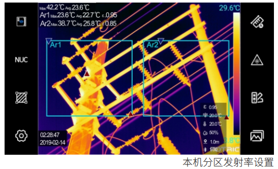 本機(jī)設(shè)置各區(qū)域不同發(fā)射率,實(shí)現(xiàn)不同材質(zhì)單獨(dú)準(zhǔn)確測(cè)量,保證測(cè)溫的準(zhǔn)確性。