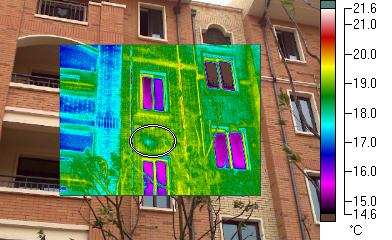 在建筑物經受了熱負荷之后(例如在高溫、干燥的晴天中陽光照射之后),對建筑物的外墻和屋頂進行紅外熱像檢查。東面的墻壁可在下午進行檢查,南面和西面的墻壁和屋頂可在日落后進行檢查。在識別出外墻和屋頂中滲漏點之后,要在建筑物內部進行檢查,以進一步確認外部檢測結果。紅外熱像檢測還可指示出天花板和墻壁中由泄漏、水管斷裂等所帶來的部位。