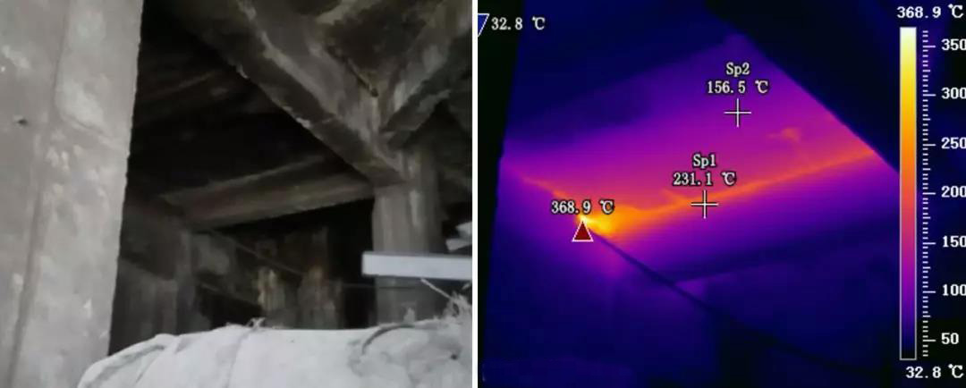 使用FOTRIC熱像儀可以快速、準確地檢測拱頂內襯的破損位置,方便及時維修,保障安全生產。熱風爐特別是拱頂部分因其圓弧外形,隔熱材料耐火磚在生產中容易發生裂縫導致脫落,嚴重時有可能造成外殼燒穿導致安全事故。