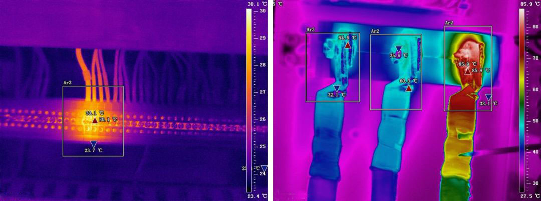 使用FOTRIC熱像儀可以準確地檢測出過熱點,及時排除隱患,確保供電安全。在鋼鐵廠輸配電系統中,有大量觸頭、開關、套管夾等,常常由于接觸不良、腐蝕或內部異常等各種原因,出現異常過熱點,嚴重影響安全供電。