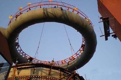 高爐熱風圍管是接受來自熱風爐送出的熱風、然后通過送風裝置將熱風送入高爐爐內, 爐殼裝配到風口帶上面的1~2帶時,可以進行熱風圍管裝配。同時向高爐噴吹燃料或礦粉、熔劑等物質的裝置,是高爐爐前設備中至關重要的組成部件,也是熱風管道系統中的薄弱環節。