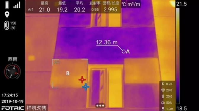 上圖顯示,熱像儀到A點的距離是12.36m,